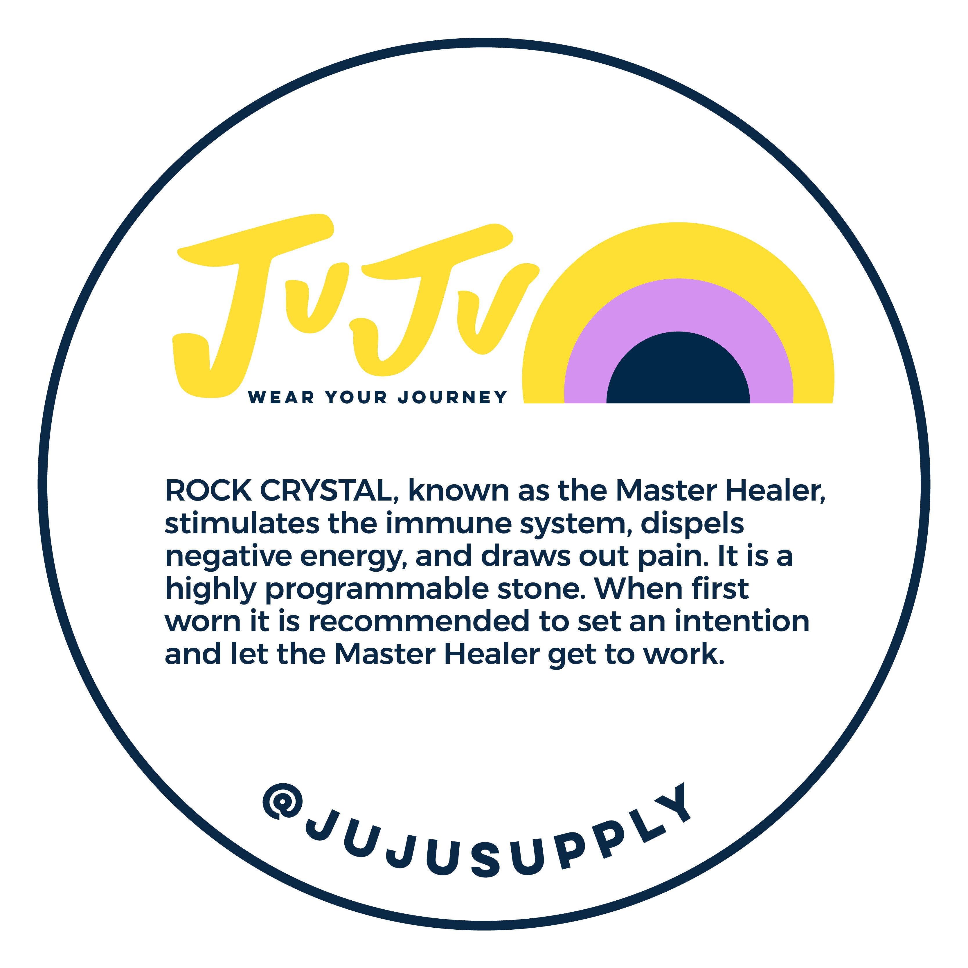 Rock crystal, known as the Master Healer, stimulates the immune system, dispels negative energy, and draws out pain. It is a highly programmable stone. When first worn it is recommended to set an intention and let the Master Healer get to work.