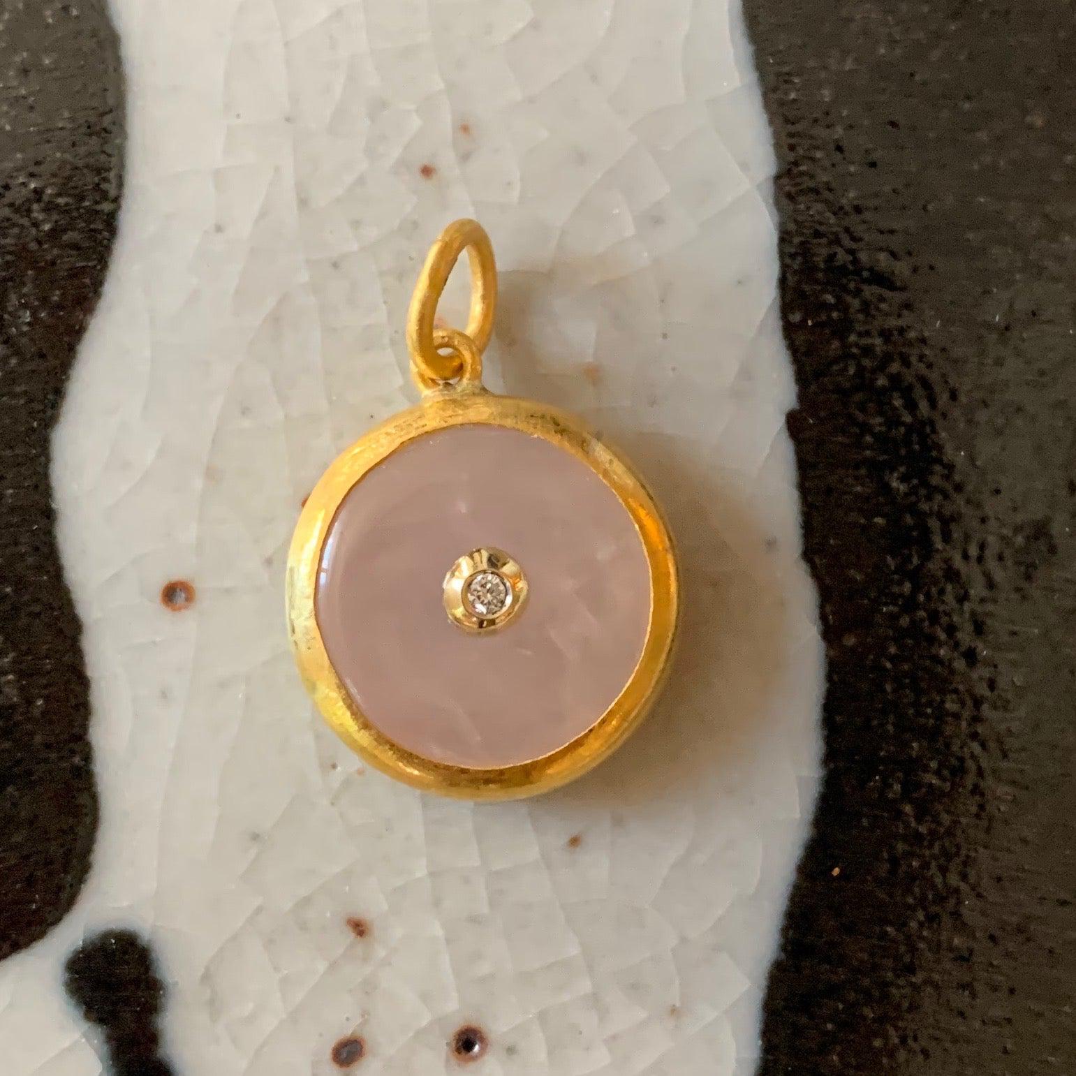 Protection 24K Rose Quartz and Diamond Evil Eye